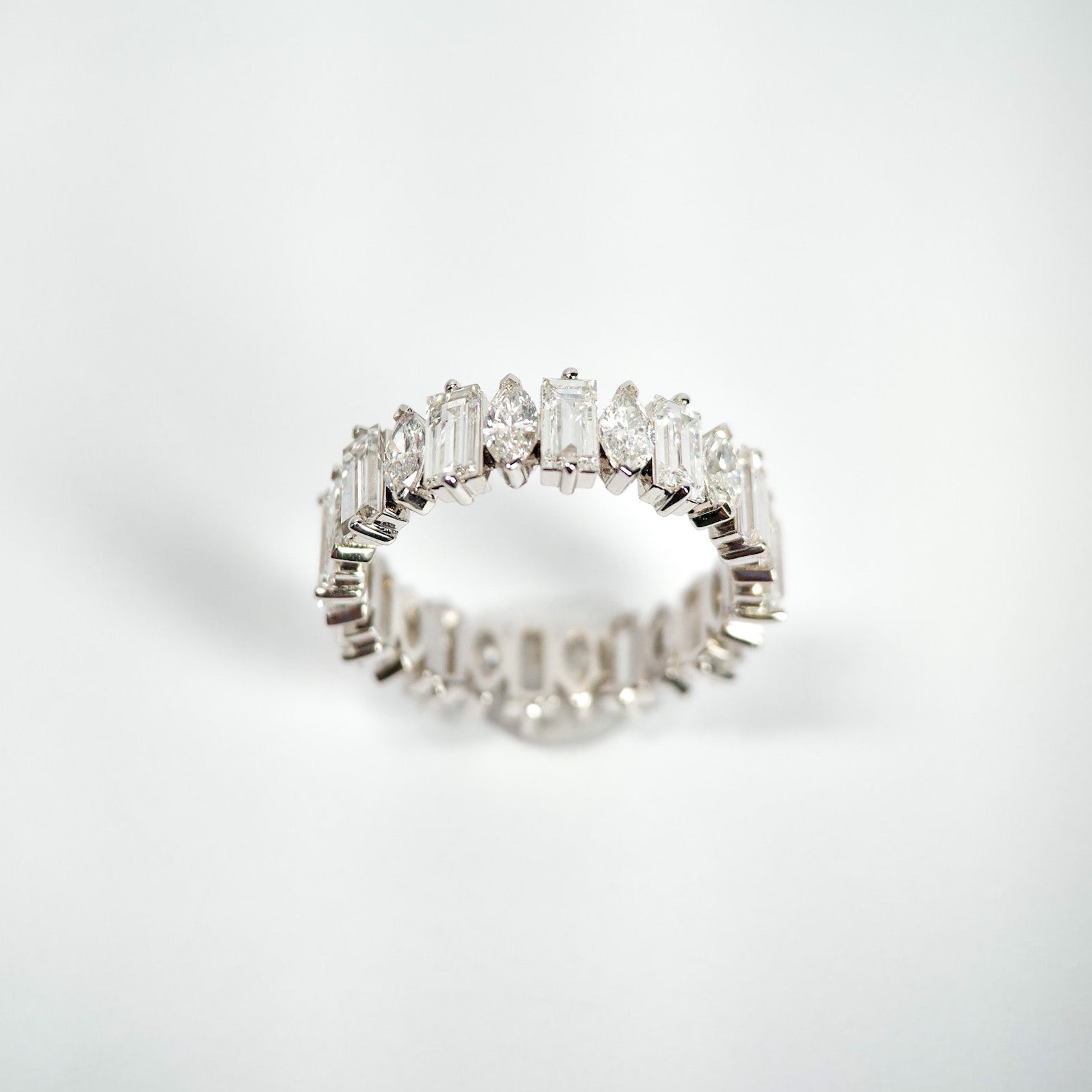IDT Certified 3.60 Carat Diamond MARQUISE-BAGUETTE CutEF ColorVVS ClaritySet in 14K White GoldSize 6 US